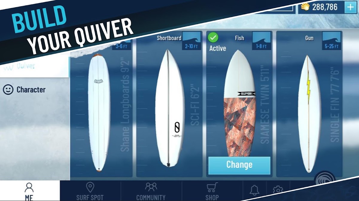 Начните собирать свой колчан. Вам понадобятся короткие доски, фанборды, лонгборды, ружья и рыба в зависимости от состояния волн, чтобы создать свою репутацию и стать легендой серфинга. По мере продвижения по карьерной лестнице вы будете открывать новые доски для покупки.