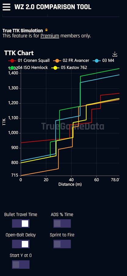 Настоящее моделирование ТТК (Премиум): доступ к реалистичным данным ТТК для различных уровней точности и дальностей боя.