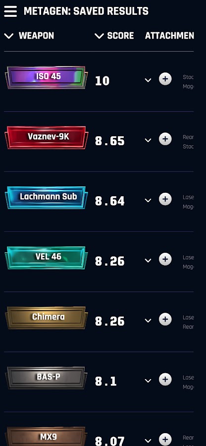 Лучший инструмент поиска статистики (премиум): найдите самые эффективные комбинации оружия на основе желаемых характеристик.