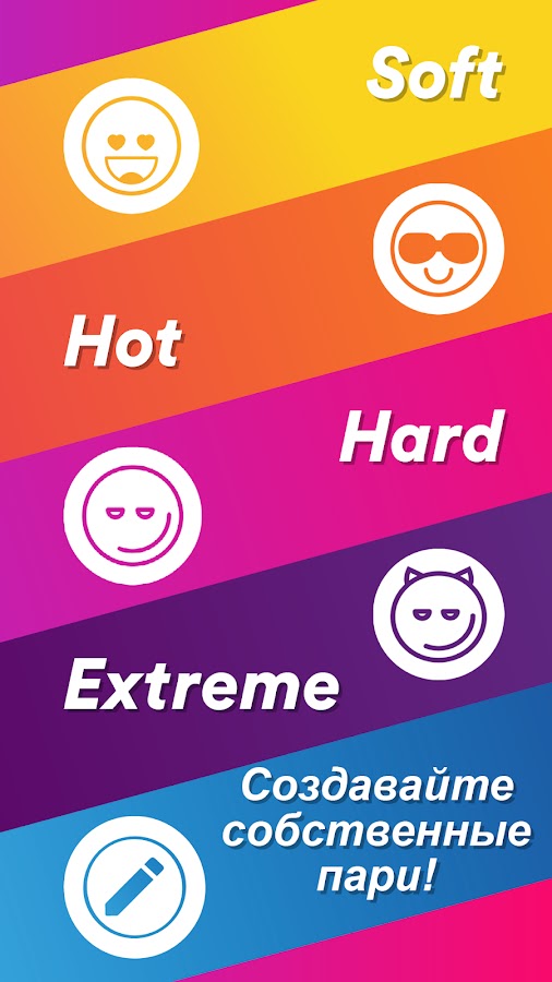 Мы со всей тщательностью создали, проанализировали, отобрали и протестировали на друзьях и в своих собственных любовных парах наши вопросы и пари, чтобы предложить вам лучшую из существующих игр для вечеринок. И чтобы сделать ваш пользовательский опыт еще более незабываемым, наш талантливый дизайнер предлагает вам новое оформление для каждого уровня игры.