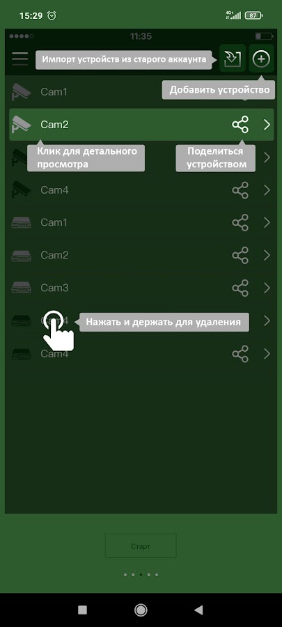 Для полноценного пользования приложением — необходимо зайти под своим аккаунтом или зарегистрировать новый. Есть возможность импорта старого аккаунта из приложения TS VMS.
