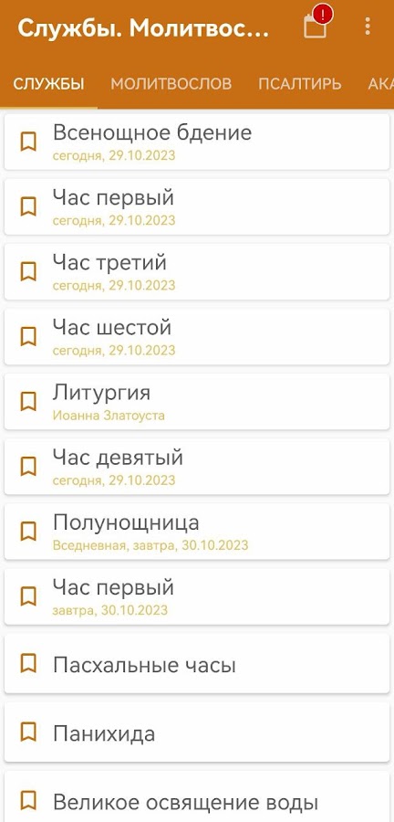 Все изменяемые части служб появляются автоматически в нужный день. Заранее увидеть службу можно с помощью календаря. С каждым обновлением мы добавляем новые тексты, поэтому мы рекомендуем выставить в настройках автообновление программы.