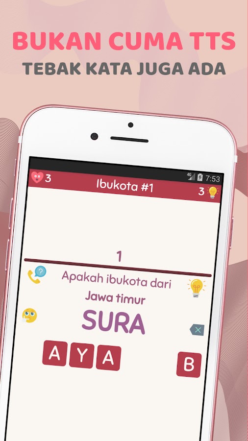 Не беспокойтесь, если вопрос поставил вас в тупик, потому что TTS Pintar предоставляет функцию помощи. Просто нажмите на значок лампочки, чтобы увидеть правильную букву, что упростит вам поиск ответа. Все еще возникают трудности? Спросите своих друзей через WhatsApp, Facebook, Instagram или другие приложения. Помощь всегда под рукой!