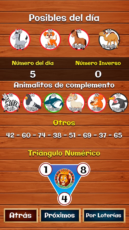 — Результаты лотерей Lotto Activo, La Granjita, Lotto Rey, Selva Plus, El Guácharo, El Guacharito, Lotto Chaima, Centena Animal, Chance with Animals, Tropigana, Condor Gana и других.