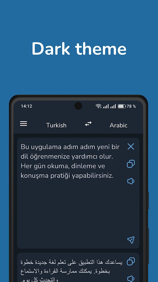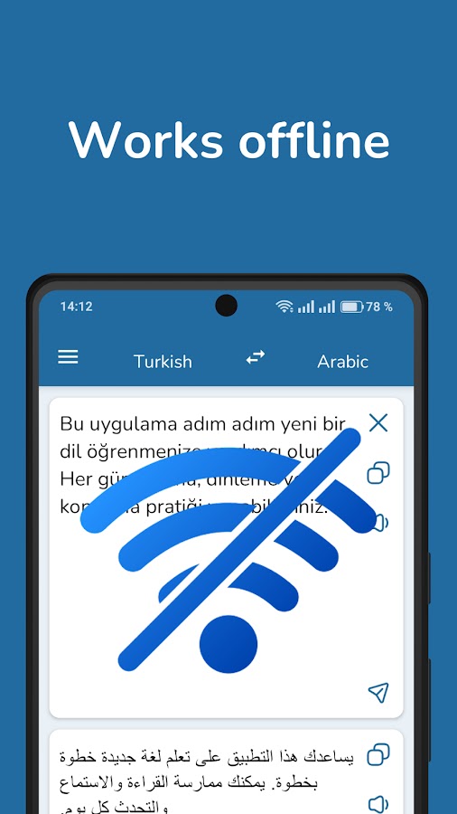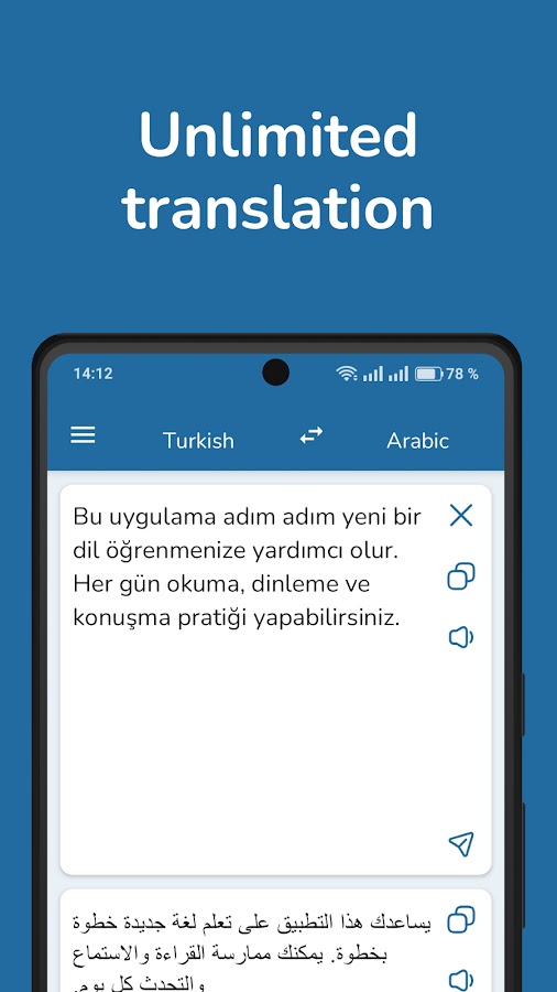 Независимо от того, изучаете ли вы арабский или турецкий язык, путешествуете за границу или работаете на международном уровне, это приложение-переводчик станет вашим основным языковым инструментом.