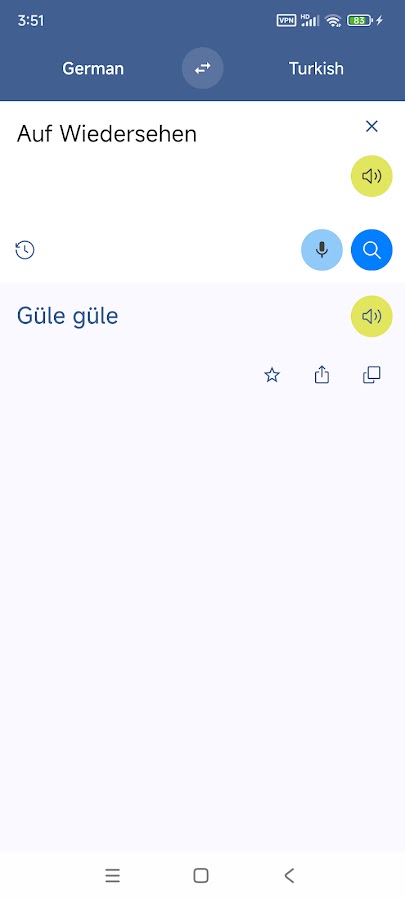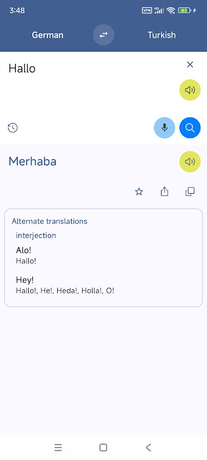 Турецкий Немецкий перевод обеспечивает переводы сообщение между немецким и турецким языками. Вы можете переводить слова и фразы, помогает изучать языки.