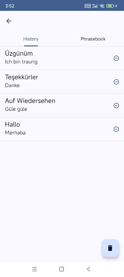 • Перевести результаты могут быть добавлены к разговорник для дальнейшего рассмотрения.