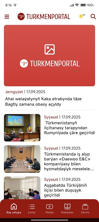Читайте главные новости Туркменистана и мира первыми. Обсуждайте, делитесь ими в социальных сетях, смотрите видео и фоторепортажи.