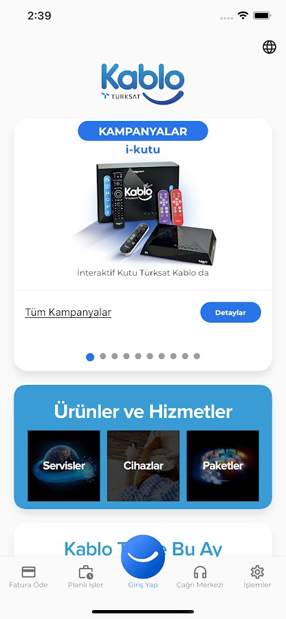 С процессинговым центром Türksat Kablo Mobile вы также можете воспользоваться многими услугами, которые вы можете использовать на веб-сайте онлайн-транзакций Türksat Kablo Services, online.turksatkablo.com.tr.