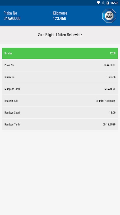 Загрузив приложение TÜVTÜRK, вы можете получить свой порядковый номер и легко выполнить свой заказ через приложение.