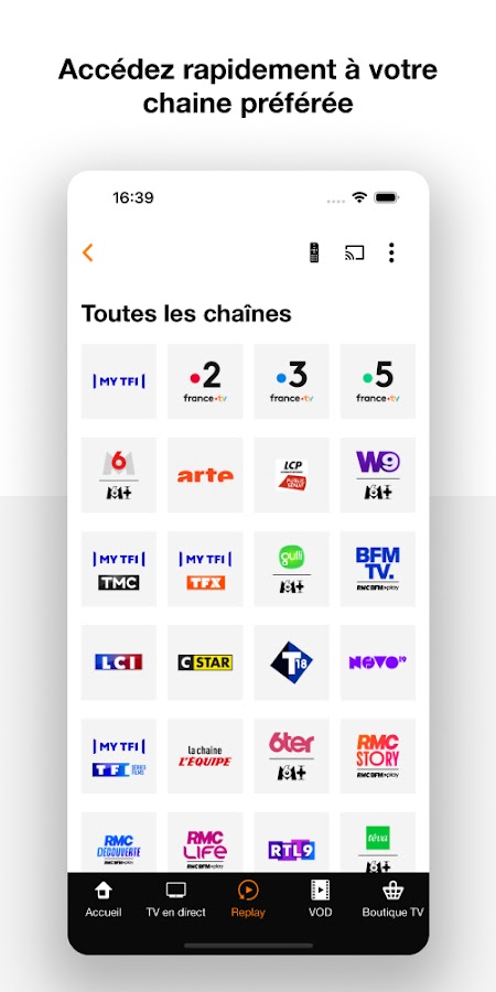 — Смотрите более 200 каналов в прямом эфире или в записи: TF1, France 2, France 3, Canal+, France 5, M6, Arte, W9, LCP-Public Sénat, France 4, CNews, BFM TV, Gulli, TF1 Séries Films, L’Équipe, 6Ter, RMC Story, RMC Découverte, Chérie 25, France Info, TV5 Monde, …