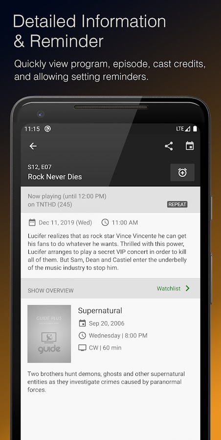 Телегид дает вам подробную информацию обо всех фильмах и шоу на телевидении с современным, красивым и умным интерфейсом.