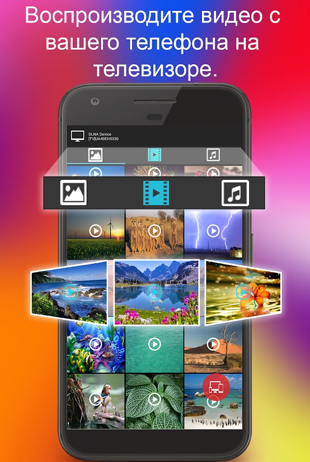 ✓ Трансляция изображения по DLNA. Воспроизводите фото, аудио и видео с вашего телефона на телевизоре.