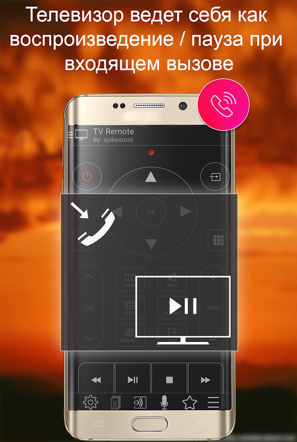 ✓ В случае входящих вызовов телевизор продолжает/приостанавливает воспроизведение или переходит в беззвучный режим.