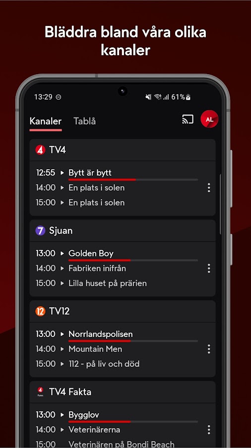 С новым TV4 Play вы можете транслировать шведские и международные фильмы и сериалы, выпуски новостей, популярные программы, каналы и спортивные состязания мирового уровня. Войдите в систему со своей бесплатной учетной записью, чтобы получить доступ к классическому ассортименту TV4, или с обновленной учетной записью, чтобы получить еще больше контента.