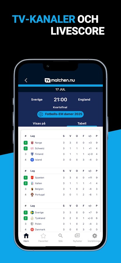 Скачайте приложение TVmatchen.nu — sport på TV для Android бесплатно - последняя версия (11.3.3) уже доступна для установки на ваш телефон или планшет.