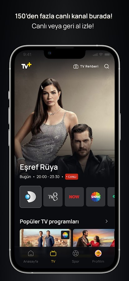 TV+ включает любимые детские каналы, такие как Disney Jr., Moonbug Kids, Nick Jr., Cartoon Network и Baby TV, а также любимые каналы для любителей документального кино, такие как National Geographic HD, Discovery Channel и Tarih TV. Кроме того, благодаря таким каналам, как Sinema TV, FX, Epic Drama HD, Sinema Aile и Tabii TV на TV+, вы можете смотреть любимые фильмы и сериалы в любое удобное время!
