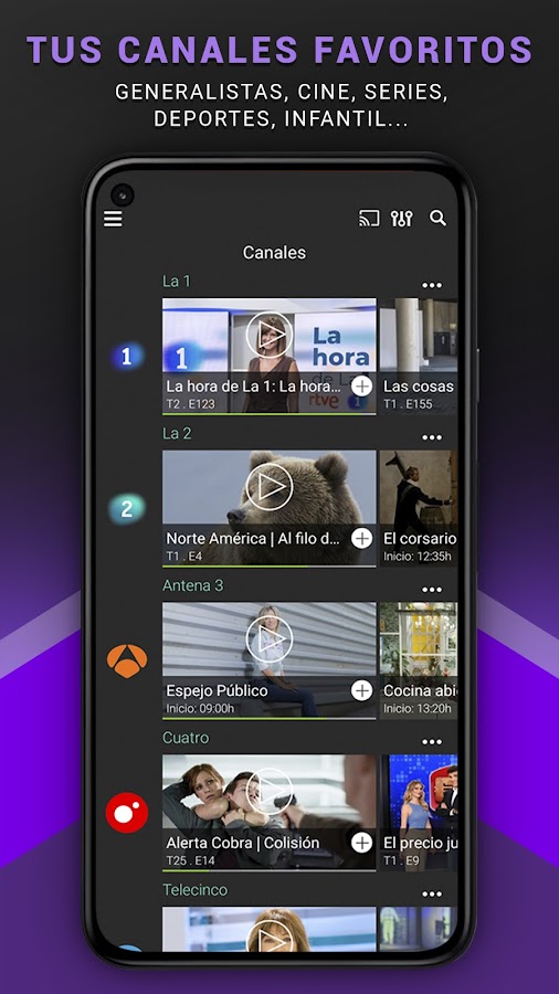 TVUp предлагает лучшее предложение линейного и нелинейного телевидения от DTT, OTT и других приложений, доступных в среде Android TV, с удобством использования следующего поколения.