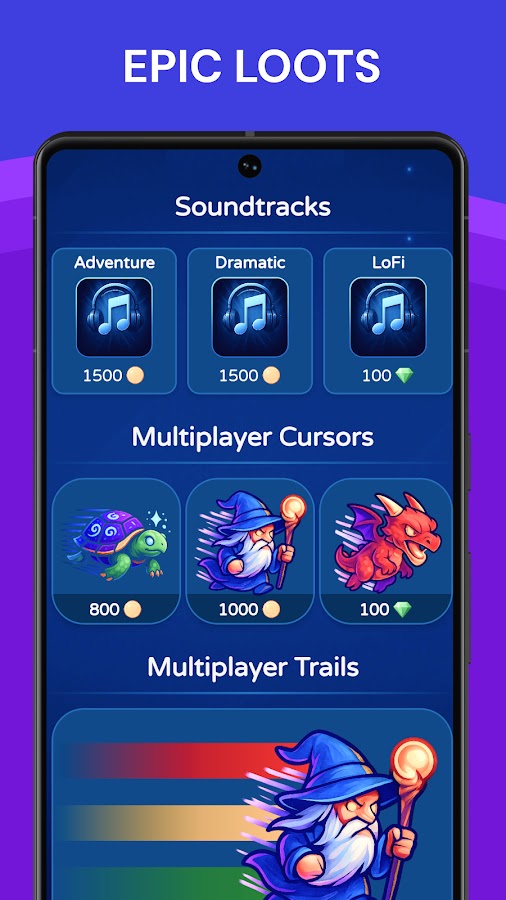 • Разблокируйте аватары, пользовательские курсоры, треки, саундтреки и эксклюзивные визуальные эффекты