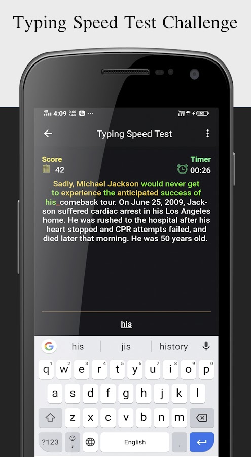 Typing Speed Test — это приложение, которое очень полезно для людей, которые хотят проверить/измерить скорость набора текста. Это поможет вам определить, насколько быстро вы можете печатать.