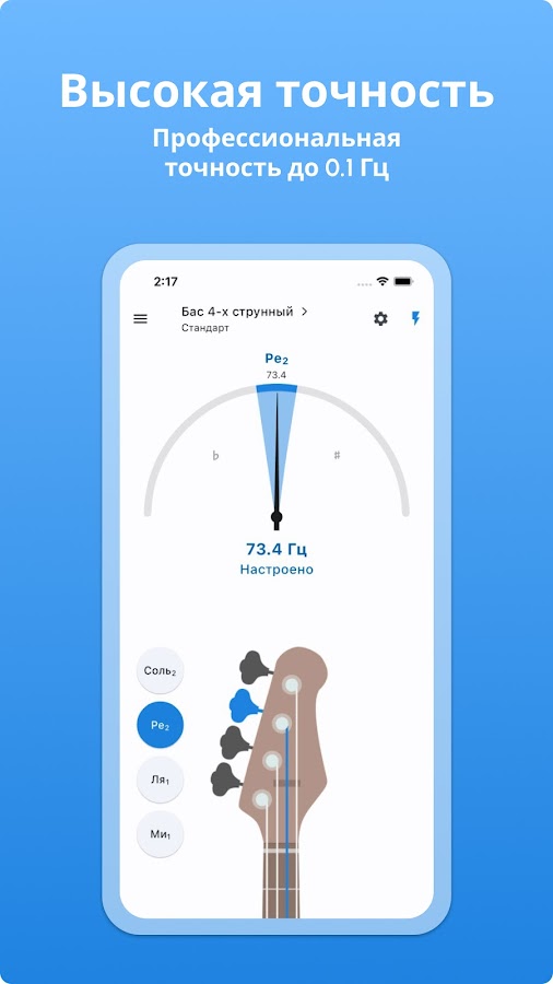 Бесплатно. Без рекламы. Профессиональный басовый тюнер с высокой точностью. Простой и очень эффективный способ настройки бас-гитары благодаря множеству функций.