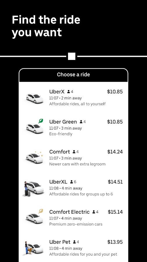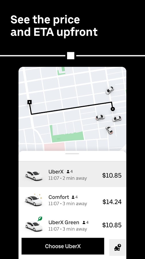 Выберите поездку, которая соответствует вашим потребностям. Uber Lite покажет цены заранее и автоматически отсортирует транспортные средства, начиная с самых доступных на момент вашего заказа.
