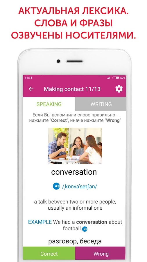 — изучение слов с примерами употребления, озвученными носителями;