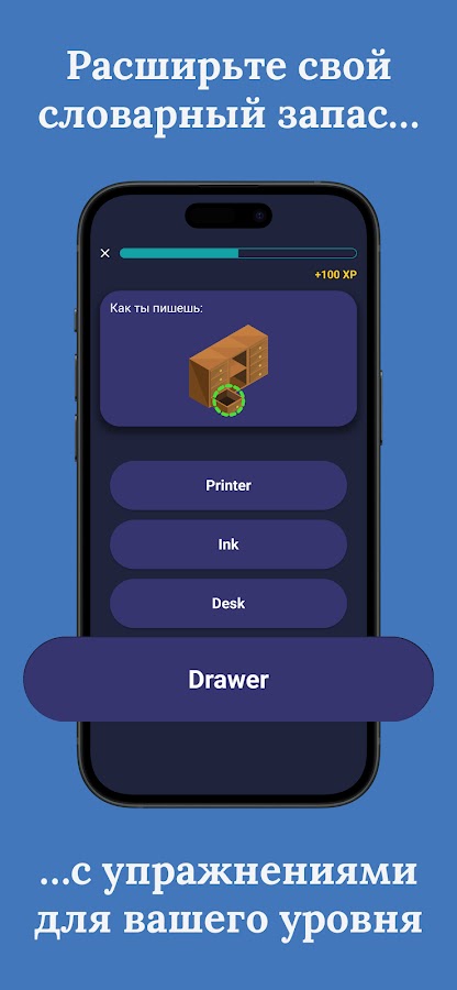 Упражнения используют изображения для помощи в запоминании слов, а режим повторения позволяет вам практиковаться и освежать все, что вы уже выучили — в любое время.