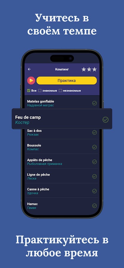 — Идеально подходит для быстрого изучения французского — будь то для путешествий, работы, учебы или общения с семьей и друзьями.