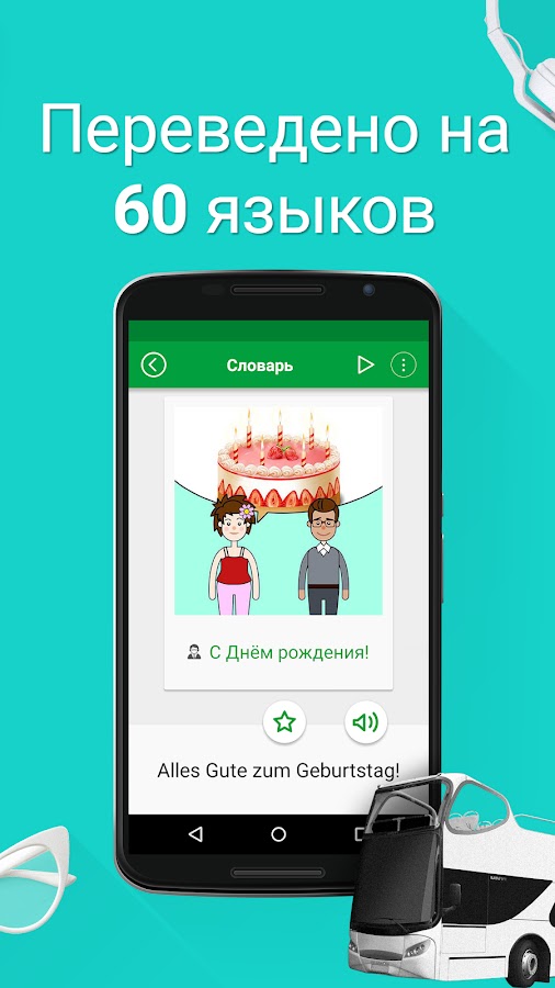 ✔ Учите разговорный немецкий на родном языке (доступно 60 языков).