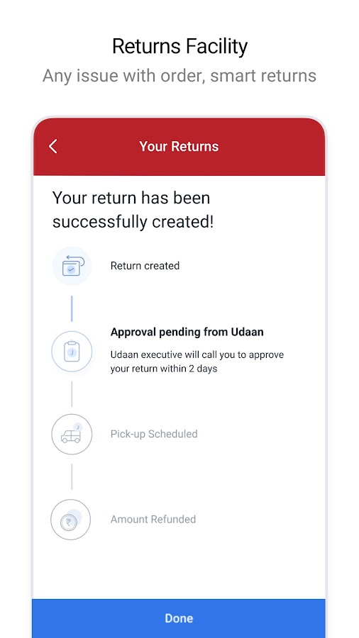 udaan предоставляет финансовые продукты и услуги малому бизнесу, производителям и розничным торговцам через udaanCapital — финтех, ориентированный на удовлетворение требований к оборотному капиталу.