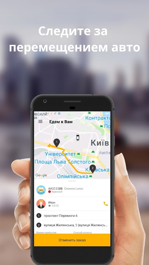 — вся информация про авто, маршрут, стоимость и многое другое на экране вашего смартфона.