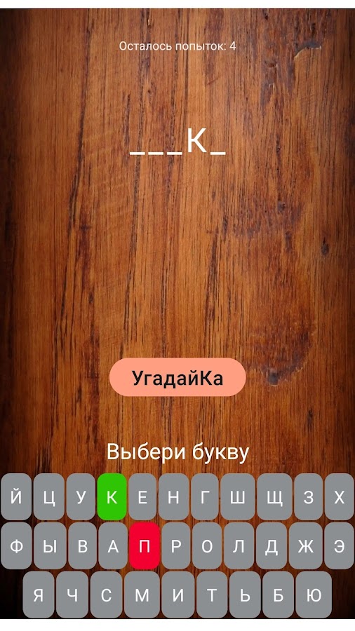 Добро пожаловать в игру «УгадайКа» — интересная игра, в которую ребенок сможет играть на телефоне и планшете. Правила простые — необходимо по буквам отгадать слово за определенное число попыток.
