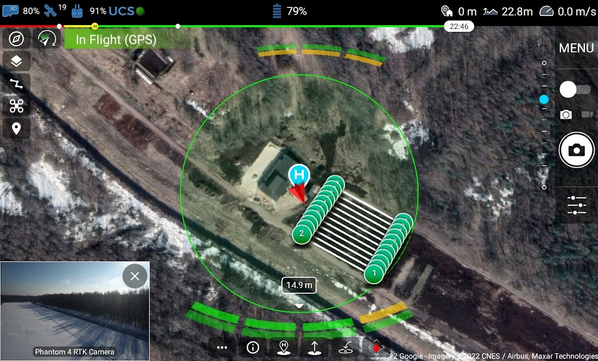 Приложение UgCS для DJI предназначено для установления связи между дроном DJI и рабочим столом UgCS для загрузки и выполнения ранее запланированного автоматического сканирования области, фотограмметрии, вертикального сканирования (фасада), картографирования коридора и других миссий по съемке с дронов. UgCS для DJI также можно использовать как отдельное приложение для ручного управления дроном DJI и захвата фотографий или видео.