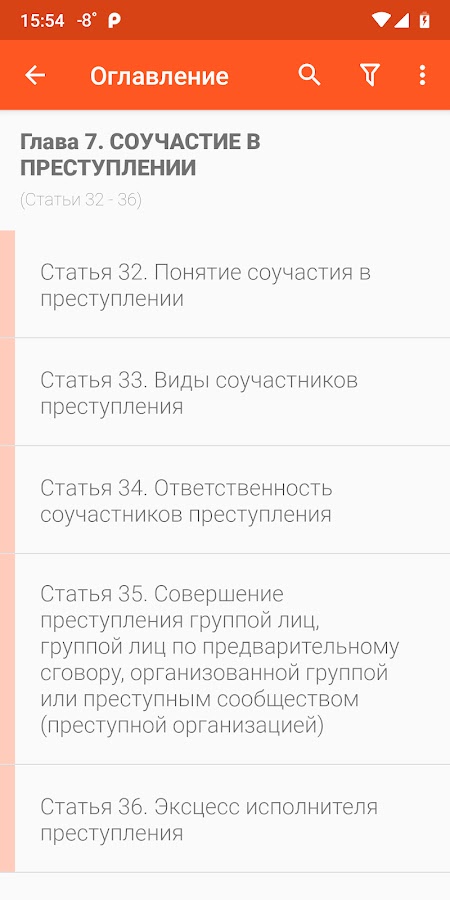 — Просмотр текста закона в виде удобного перелистывания статей, возможностью копирования выделенного фрагмента, поиска по тексту
