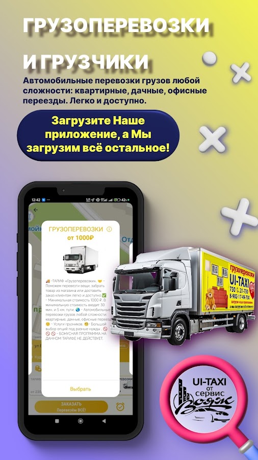 Мы также предлагаем услуги грузоперевозок — просто загрузите наше приложение, а все остальное сделаем мы!