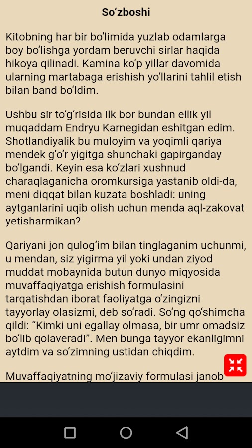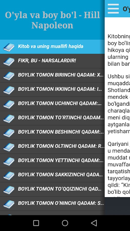 Сиз дунёдаги энг мўъжизали таъсир кўрсатувчи китоблардан бирини ўқийсиз. Ушбу китобдан бой бўлишнинг синовдан ўтган режасини топасиз. У қандай қилиб ишга киришиш тўғрисида ҳикоя қилиб беради. Ҳаёти давомида инсонга олға қадам ташлаш, ўз бахт-саодатини яратиш ва бойликни кўпайтириш учун нималар ёрдам беради, бошқалар, ҳатто бу ишни бошламаган дамларда қай тарзда кўмаклашади — китобда ана шу ҳақда сўз боради.