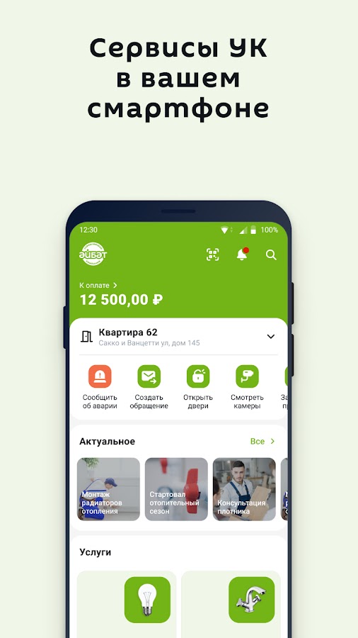 Мобильное приложение для жителей домов под управлением ООО УК Эйбэт.