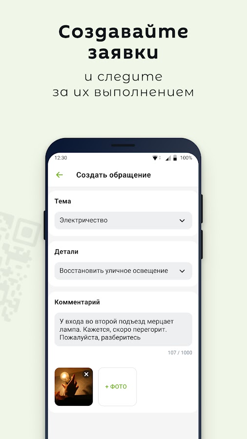 Отправлять заявки, отслеживать статус их выполнения, общаться с управляющей компанией и оценивать качество работы;