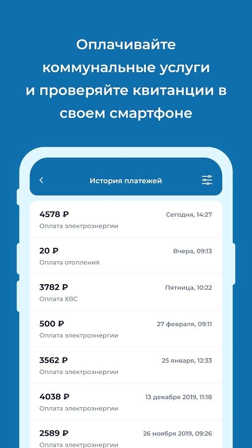 — удобно и безопасно оплачивать счета за жилищно-коммунальные услуги, а также просматривать историю платежей.