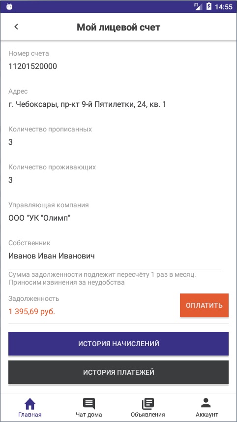 Приложение предназначено для удобного взаимодействия жителей со своей Управляющей компанией. Возможности, доступные для пользователя приложения: передача показаний приборов учета, составление заявок и обращений, оплата за коммунальные и жилищные услуги.