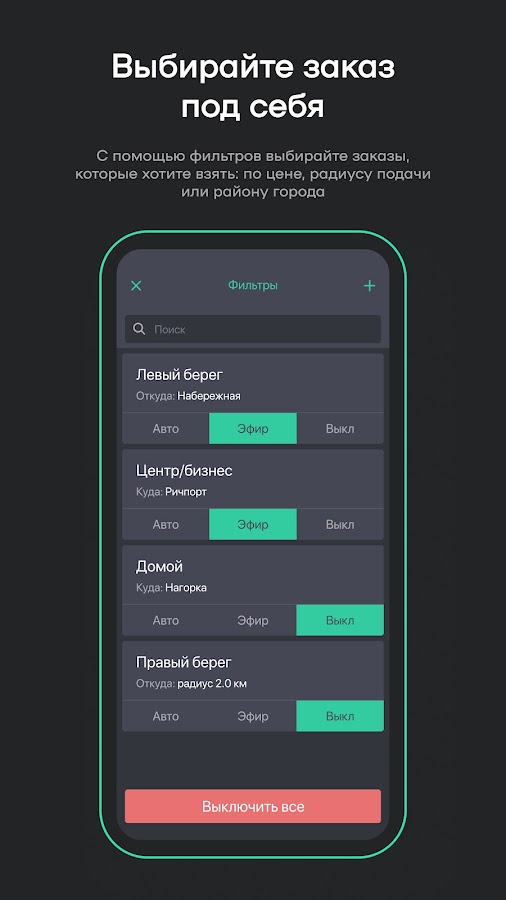 • доступ к списку доступных рядом заказов