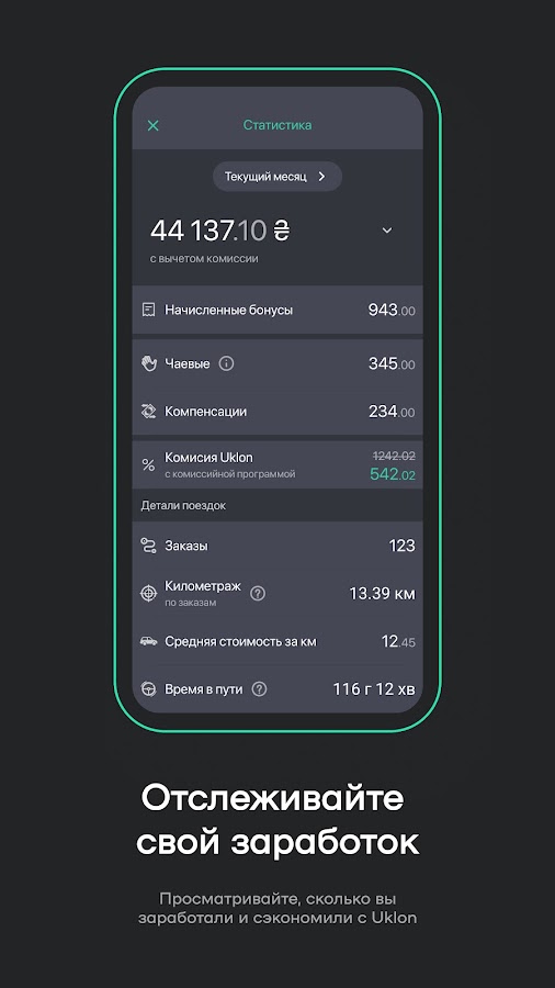 Uklon Driver предоставляет водителю следующие возможности: