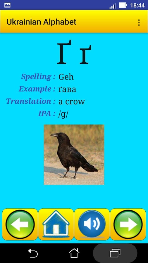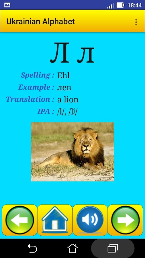 Это бесплатное и полное приложение содержит весь украинский алфавит; он содержит тридцать три письма; это помогает незнакомым студентам в университетах Украины; но также ; учащиеся средней школы могут использовать его; или лицей; для изучения алфавита и произношения; и метод разговора; студенты могут найти ПНД; IPA — метод написания букв; Это приложение использует аудиовизуальный метод обучения; каждая буква; объясняются изображениями и звуком; От коренного украинского человека; вы можете внести свой вклад в это приложение своими предложениями или предложениями или критиками; Вы можете связаться с нами по электронной почте, если у вас есть какие-либо вопросы