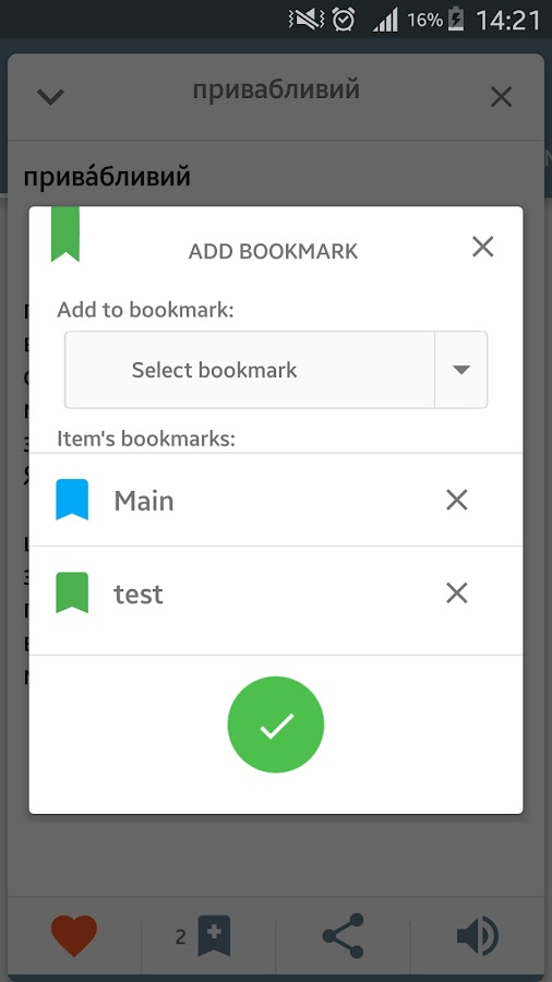6. Закладки — Создания закладки и добавления слова в закладки.