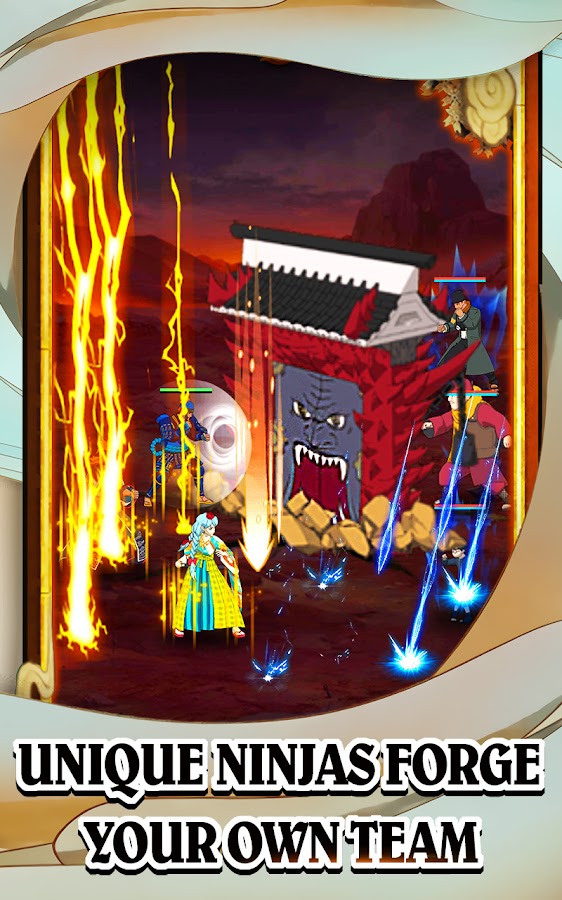 Набирайте собственных сильных ниндзя и создавайте различные комбинации, чтобы создавать различные командные сражения! Одержите свои собственные победы с помощью свидетельств легендарных ниндзя!
