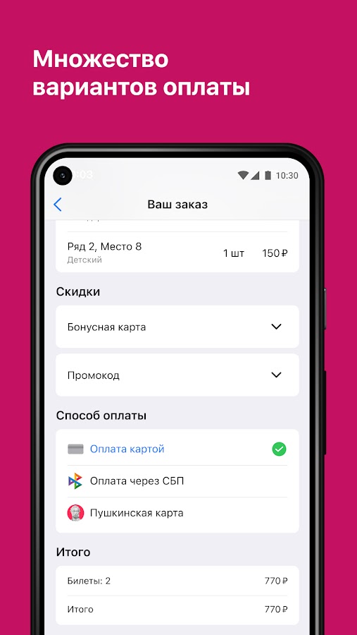 Купите билеты в кинотеатр всего в несколько касаний! Используйте вашу банковскую карту для безопасной и удобной оплаты.