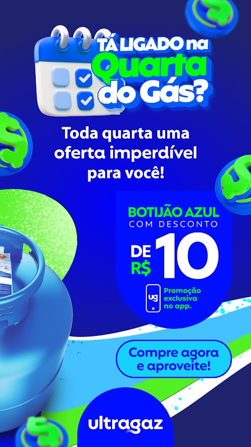 Скачайте приложение Ultragaz прямо сейчас, проверяйте цены на газ, покупайте газовые баллоны и заказывайте газ для приготовления пищи напрямую у наших дистрибьюторов.
