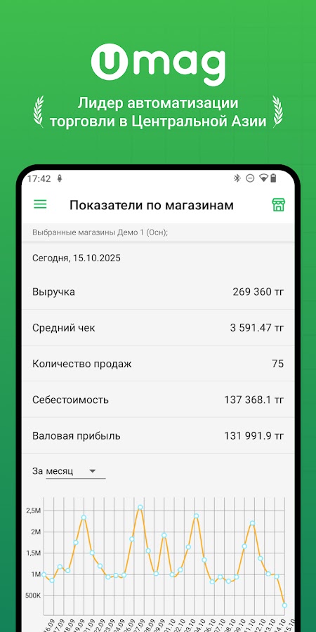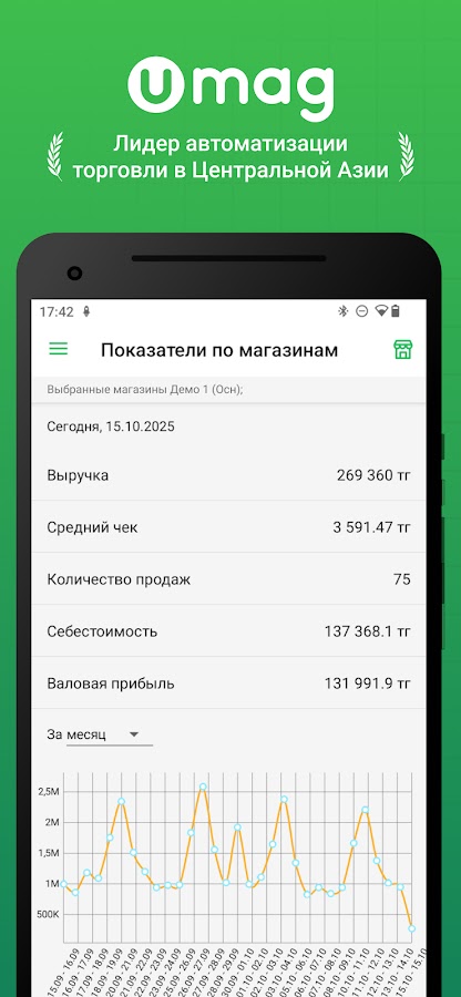 Мобильное приложение UMAG — Умный магазин позволит вам быстро оценивать эффективность работы вашего магазина дистанционно.