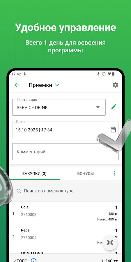 — Проведение приемки товаров: